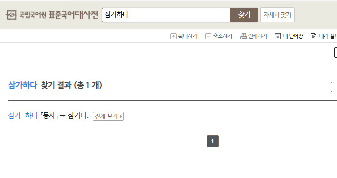 '삼가하다' 를 국립국어원 표준국어대사전에서 검색하면