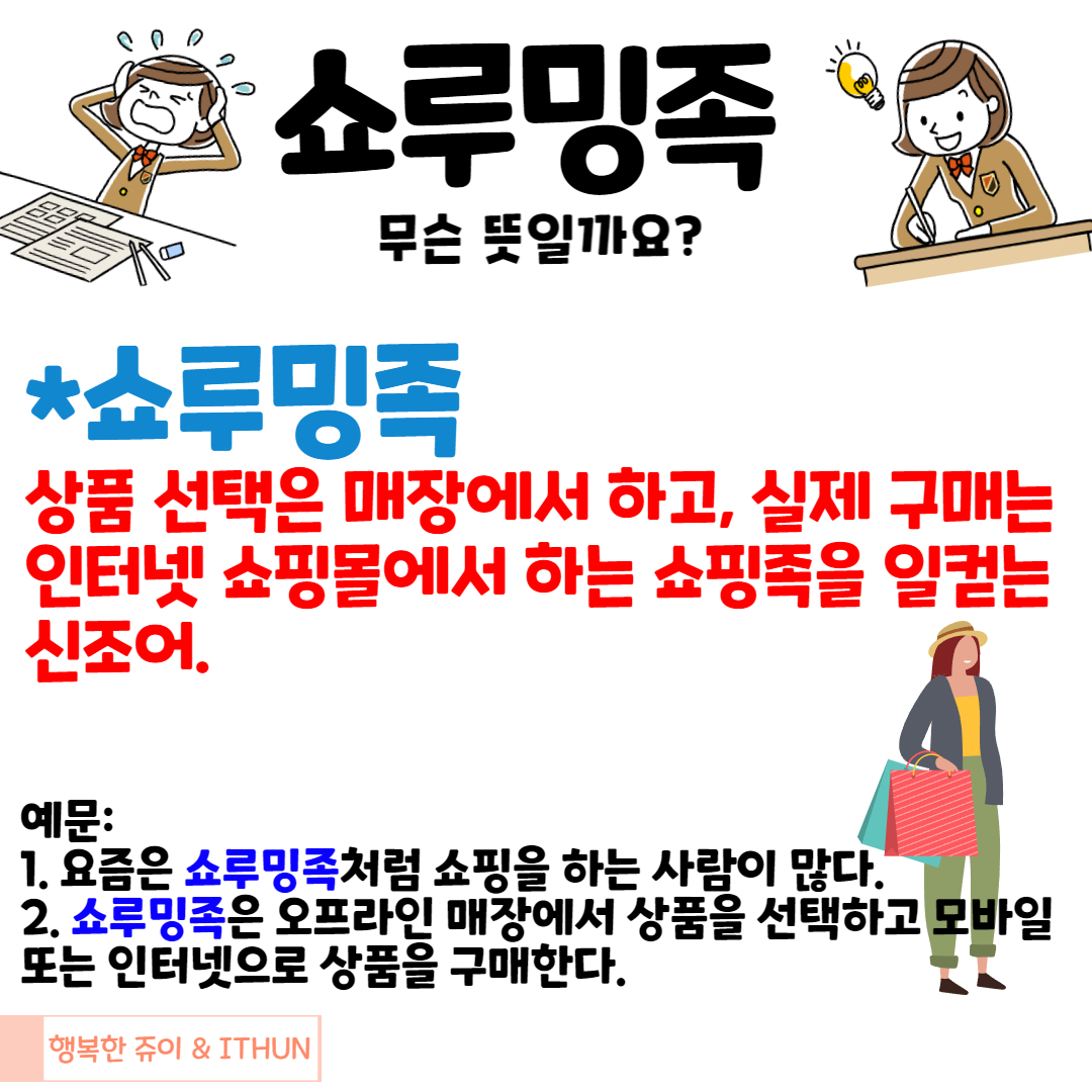 상품 선택은 매장에서 하고, 실제 구매는 인터넷 쇼핑몰에서 하는 쇼핑족을 일컫는 신조어.