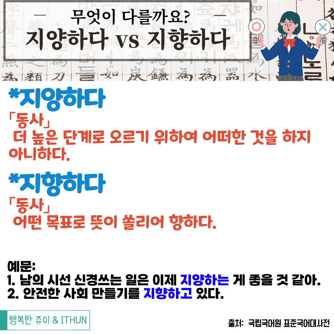 '지양하다' 와 '지향하다' 는 전혀 다른 뜻을 가진 낱말!