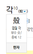 '껍질' 과 '껍데기' 는 각각 비슷한 뜻도 있었지만 명확하게 구분해서 써야 하는 다른 뜻도 있었다. 찾으면서 가장 의아했던 것은 위에도 적었지만 '껍데기' 와 비슷한 말이라고 적힌 '각' 이 한자어 '껍질 각' 이라는 사실이었다.