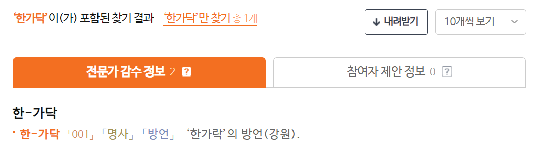 '한가닥' 을 국립국어원 표준국어대사전에서 검색해보니