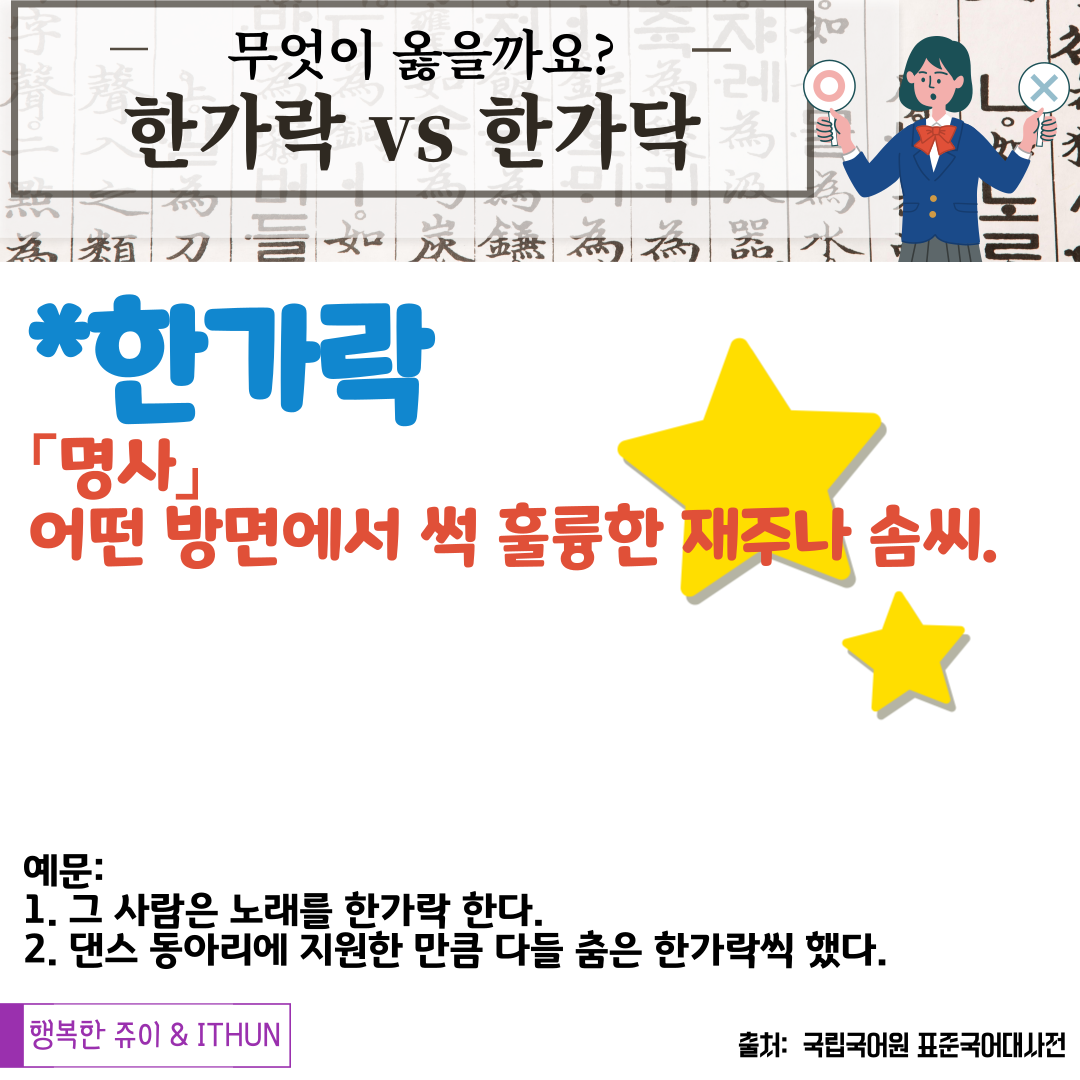 그런데 '한가락' 의 뜻이 '어떤 방면에서 썩 훌륭한 재주나 솜씨' 라는 뜻이 었다니!