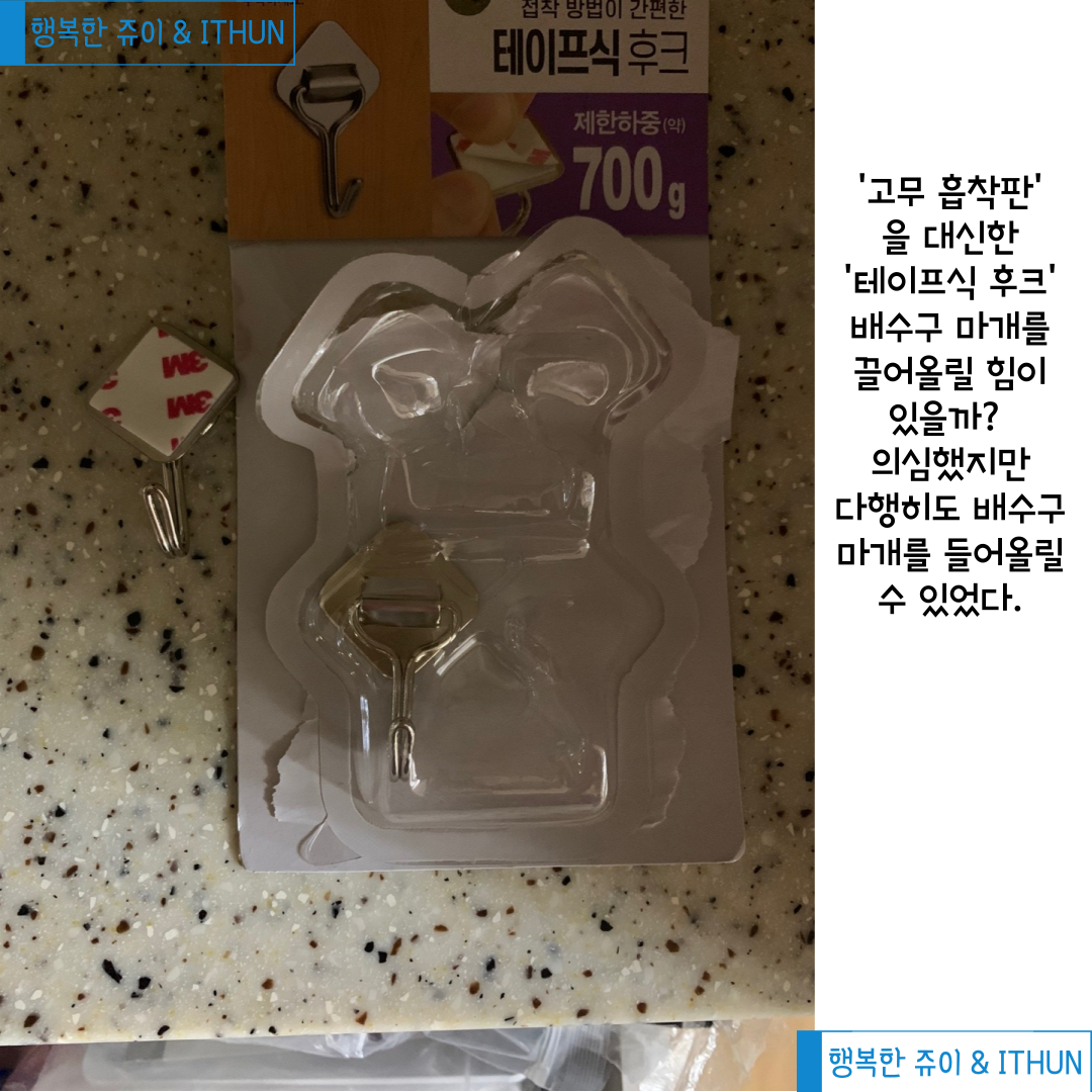 2번 딸이랑 막 서랍장을 열며 고무 흡착판을 대신할 도구를 찾고 있다가 '테이프식 후크' 를 발견했다.