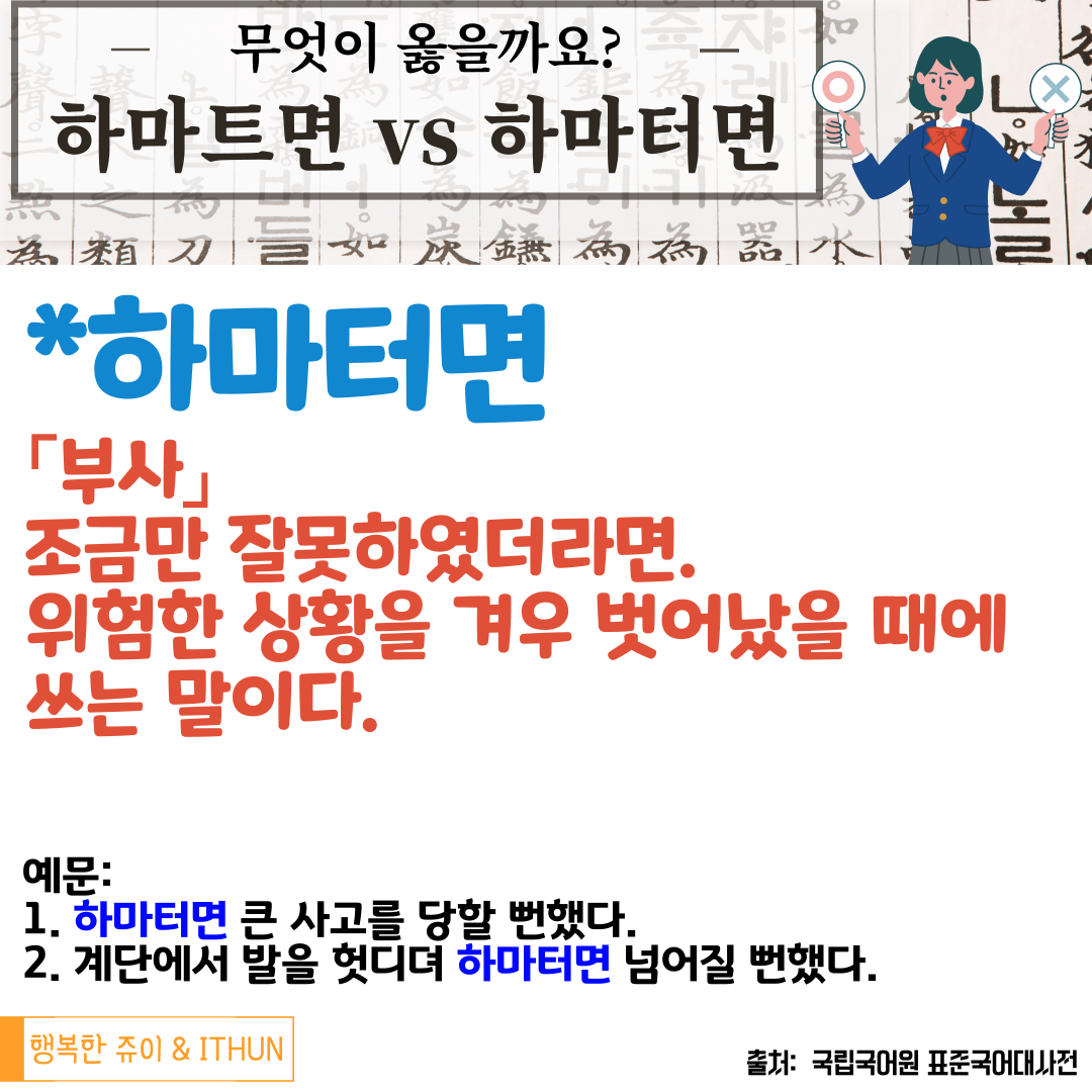 '하마터면' 으로 바르게 사용하자!