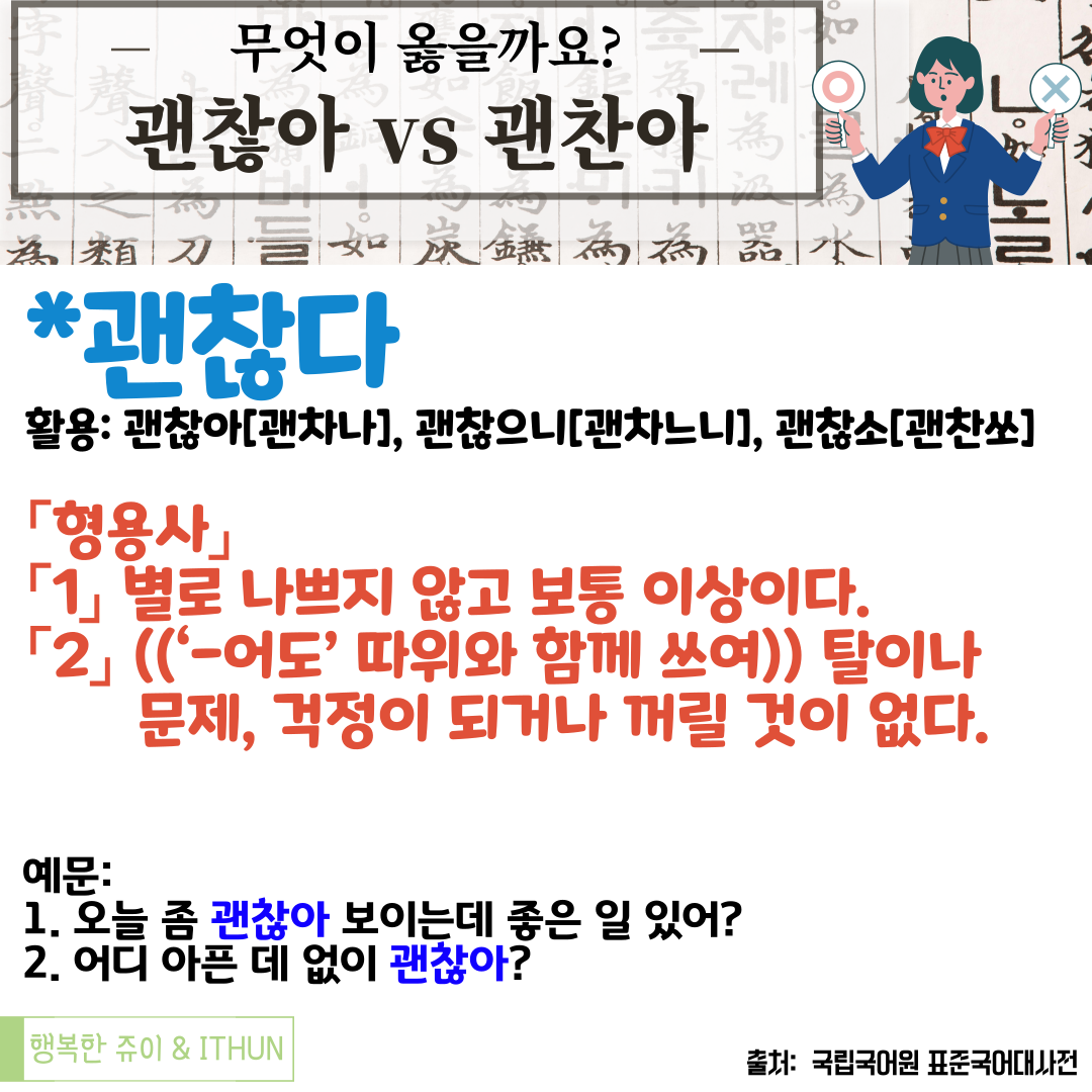 함께 알아 본 '괜찮아' 와 '괜찬아'