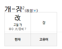 「비슷한말」 개잠(改잠)
