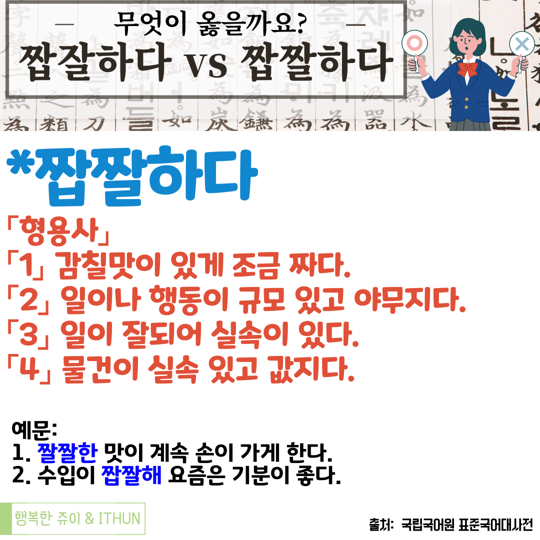 오늘은 '짭짤하다' 와 '쩝쩔하다' 를 정리해보았다.