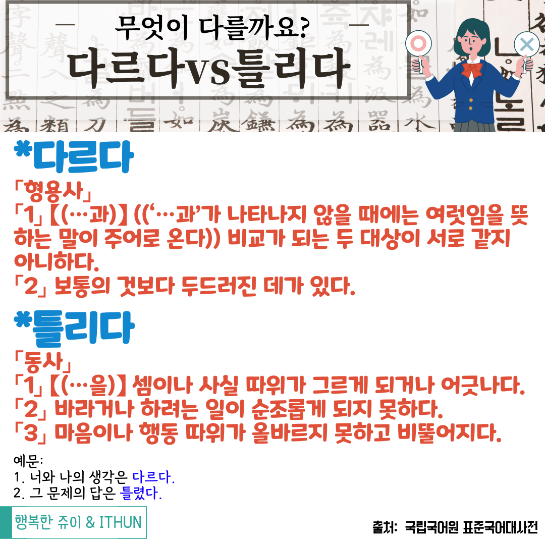 여기서 다르다? 와 틀리다? 중 무엇이 맞는지 확인하고 싶다면