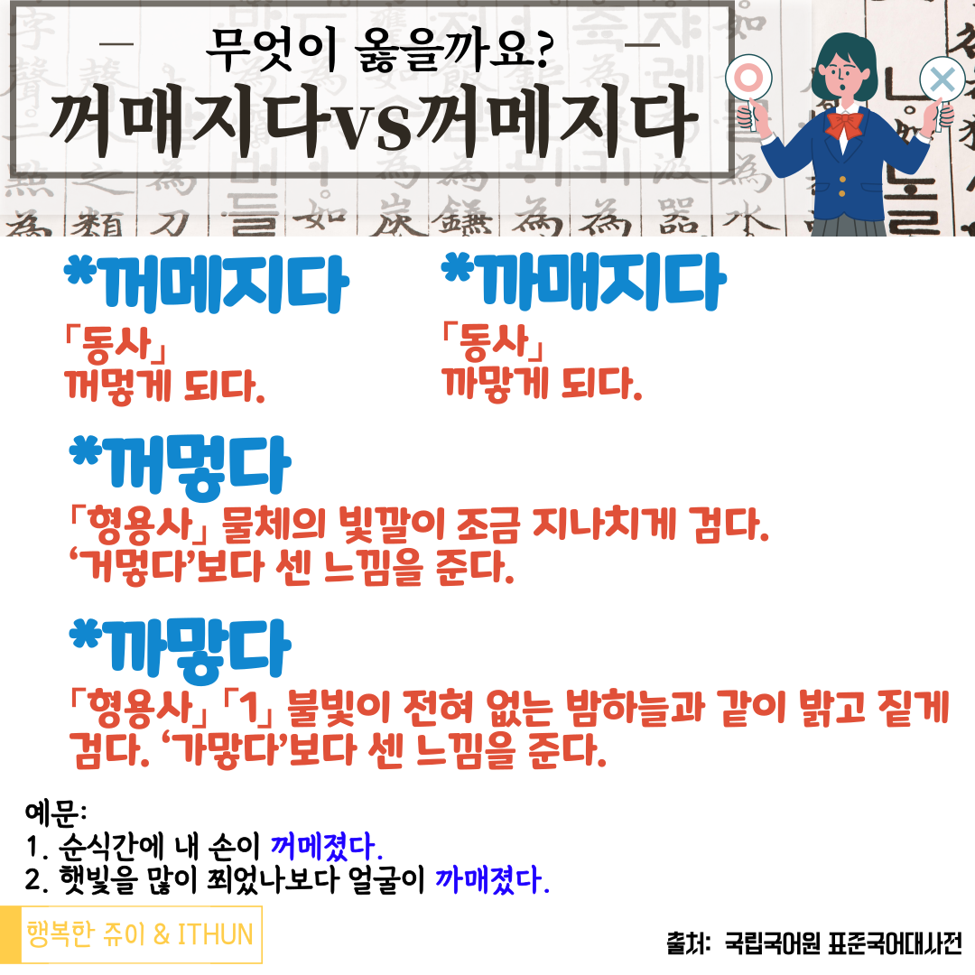 까매지다, 꺼메지다