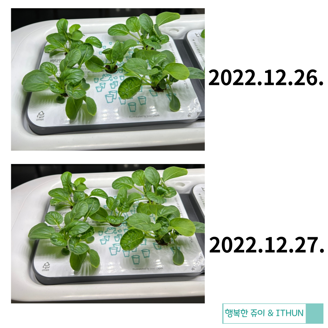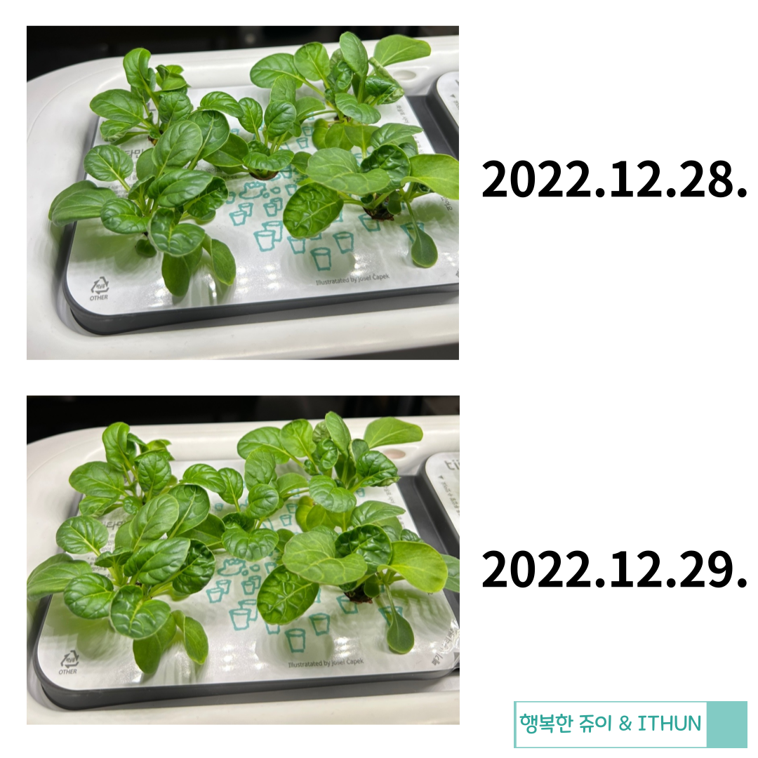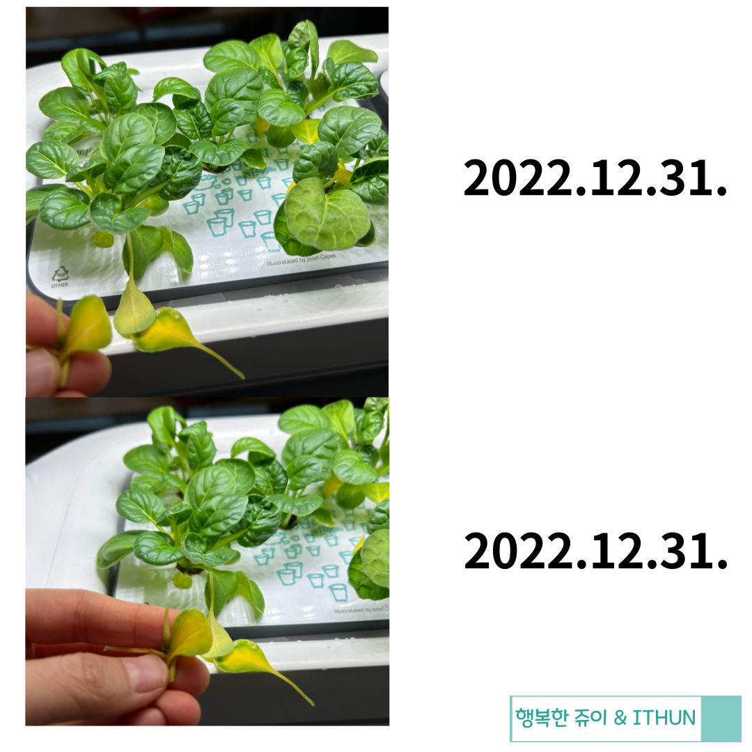 벌써 이사온 지도 한 달, 이사오자마자 키우기 시작했던 틔운 미니 '우리가족행복' 도 점점 내가 알던 비타민의 모양으로 잘 자라고 있다. 무척 잘 자라고 있던 '우리가족행복' 그런데 목요일부터 노란색 잎이 보이기 시작했다. 남편이 이래서 '솎아주기' 를 해야한다고 했던 건가? *솎아주기 실한 식물을 가꾸기 위해서 실하지 않은 식물을 솎아 내는 일