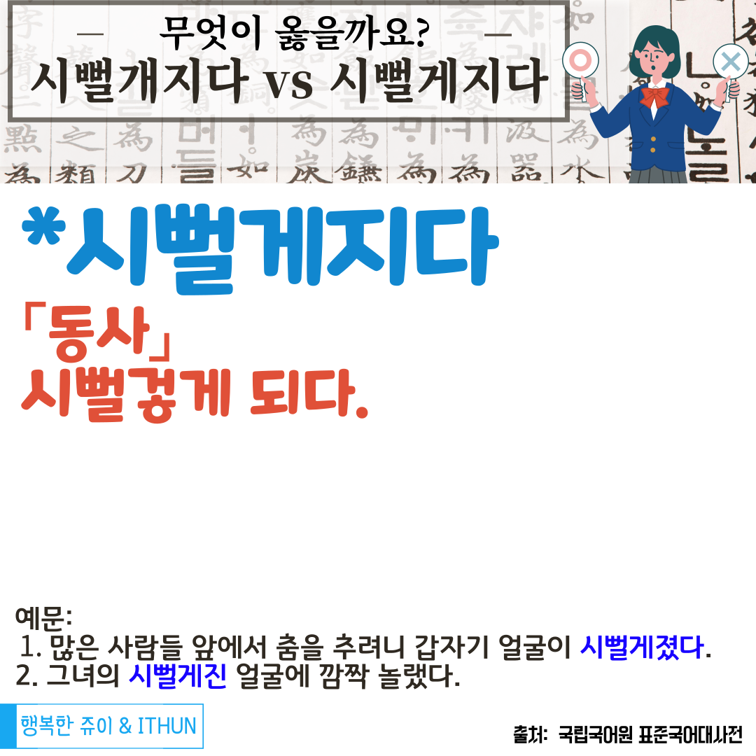 '시뻘개지다' 와 '시뻘게지다' 를 헷갈리는 이유는