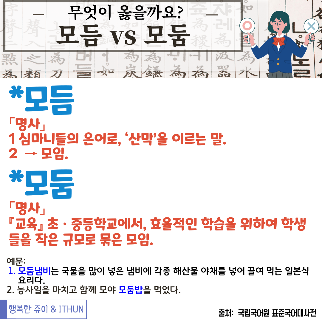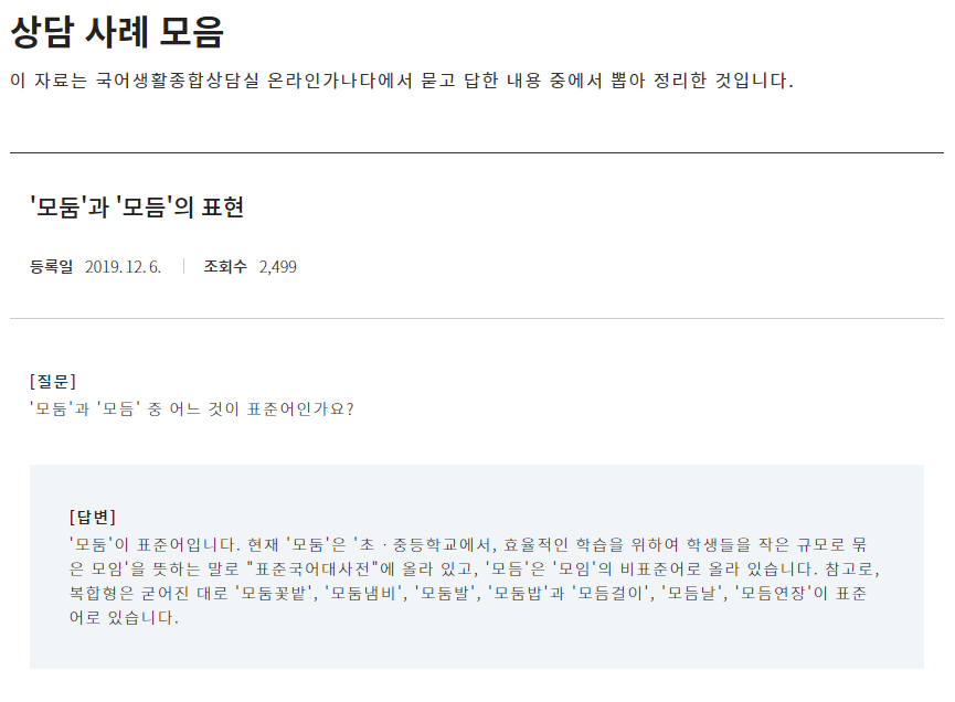 출처: 상담 사례 모음('모둠'과 '모듬'의 표현}) | 국립국어원 (korean.go.kr)