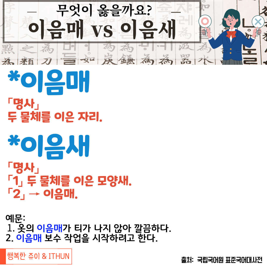 '이음새' 를 넣어 잘못 사용하는 경우가 많다고 한다.