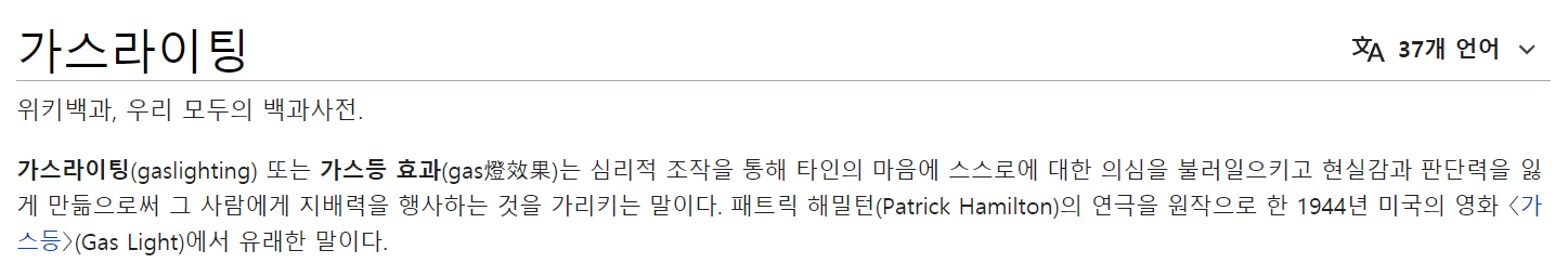 하지만 정작 가스라이팅은 정확히 무슨 뜻인지는 나도 잘 모른다.