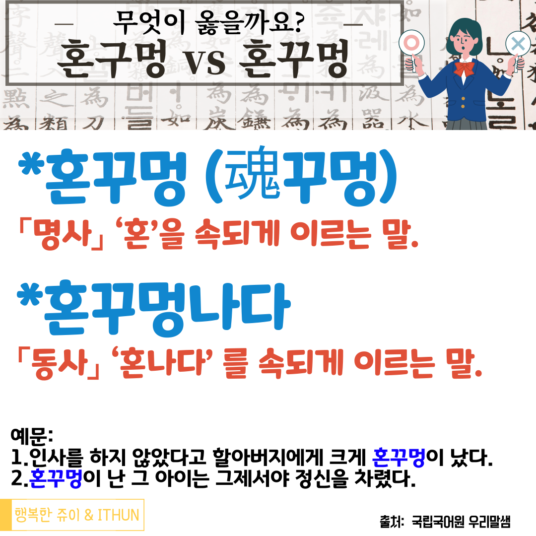 오늘은 '혼꾸멍' 과 '혼꾸멍나다' 에 대해 알아보았다.
