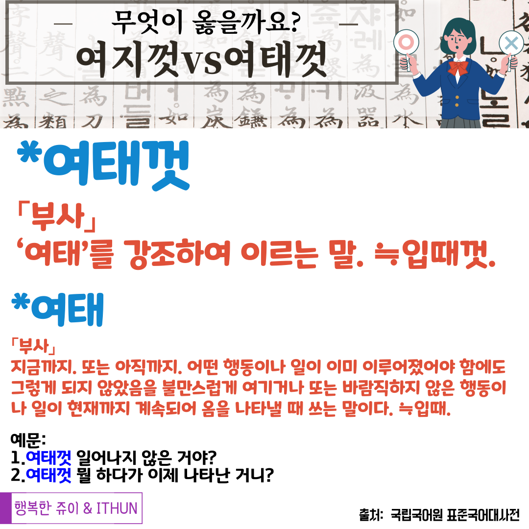 '여지껏' - '여태' 를 강조하여 이르는 말. 규범 표기는 '여태껏' 이라고 나와 있었다.