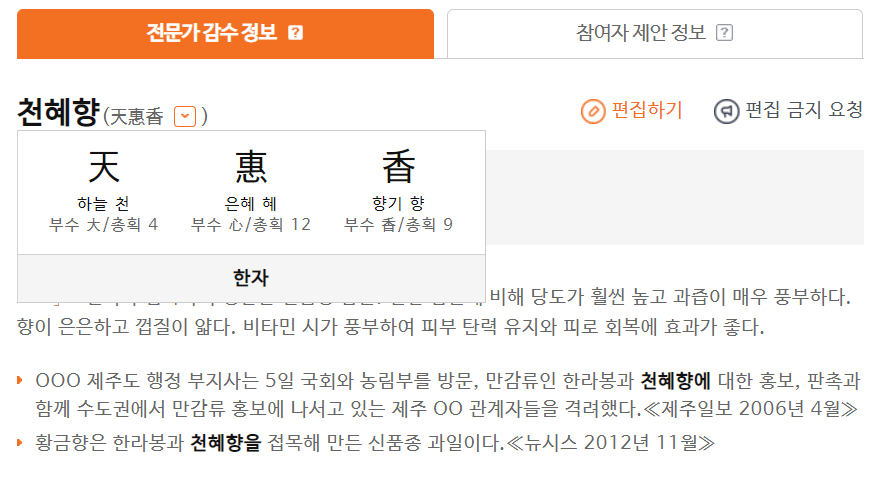 '천혜' 와 관련된 단어로는 '천혜향' 이 있다.