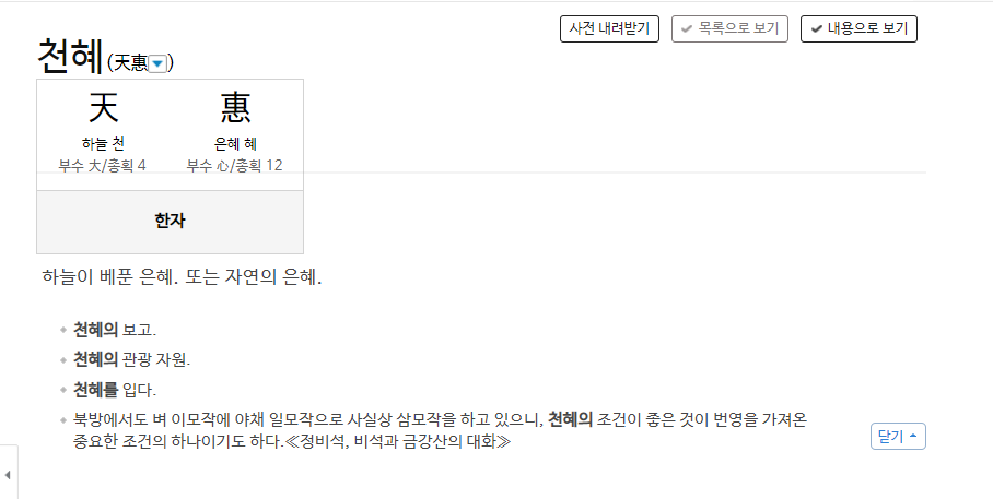 오늘은 '천혜' 에 대해 정리해 보았다.