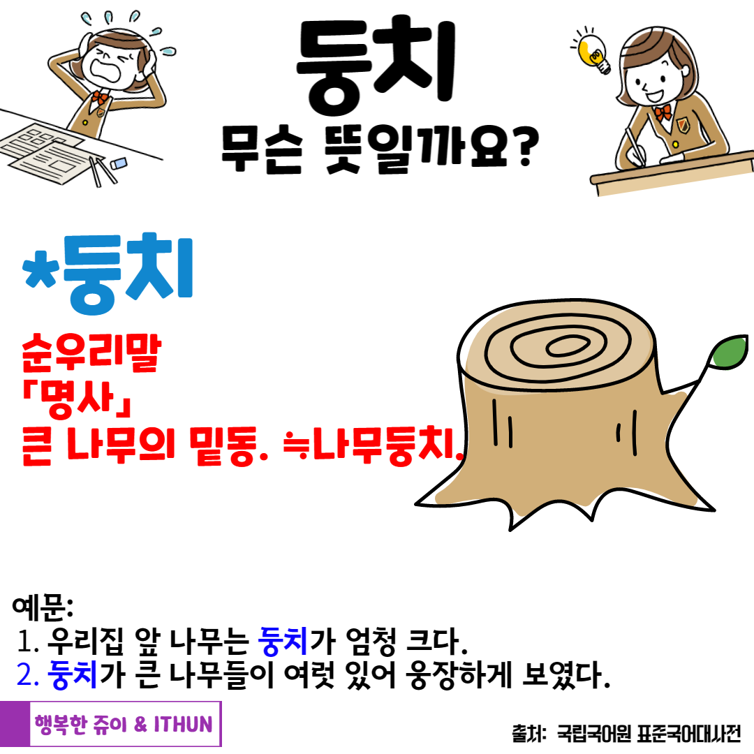'둥치' 와 '덩치', '밑동' 도 모두 순우리말이다.