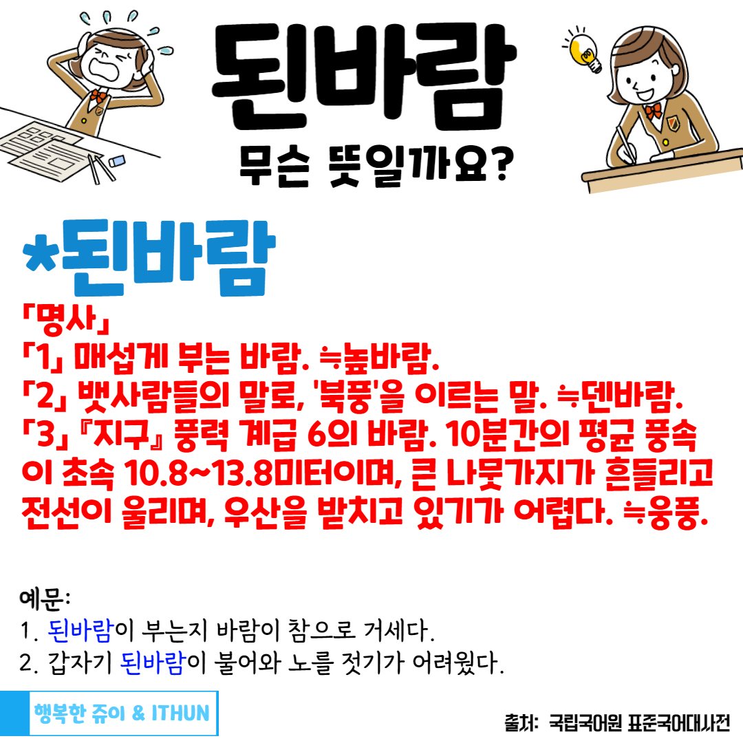 오늘은 '된바람' 에 대해 정리해 보았다.