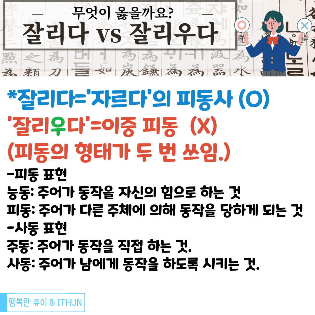 | 잘리다vs짤리다, 무엇이 옳을까요? (0) | 2023.03.29 |