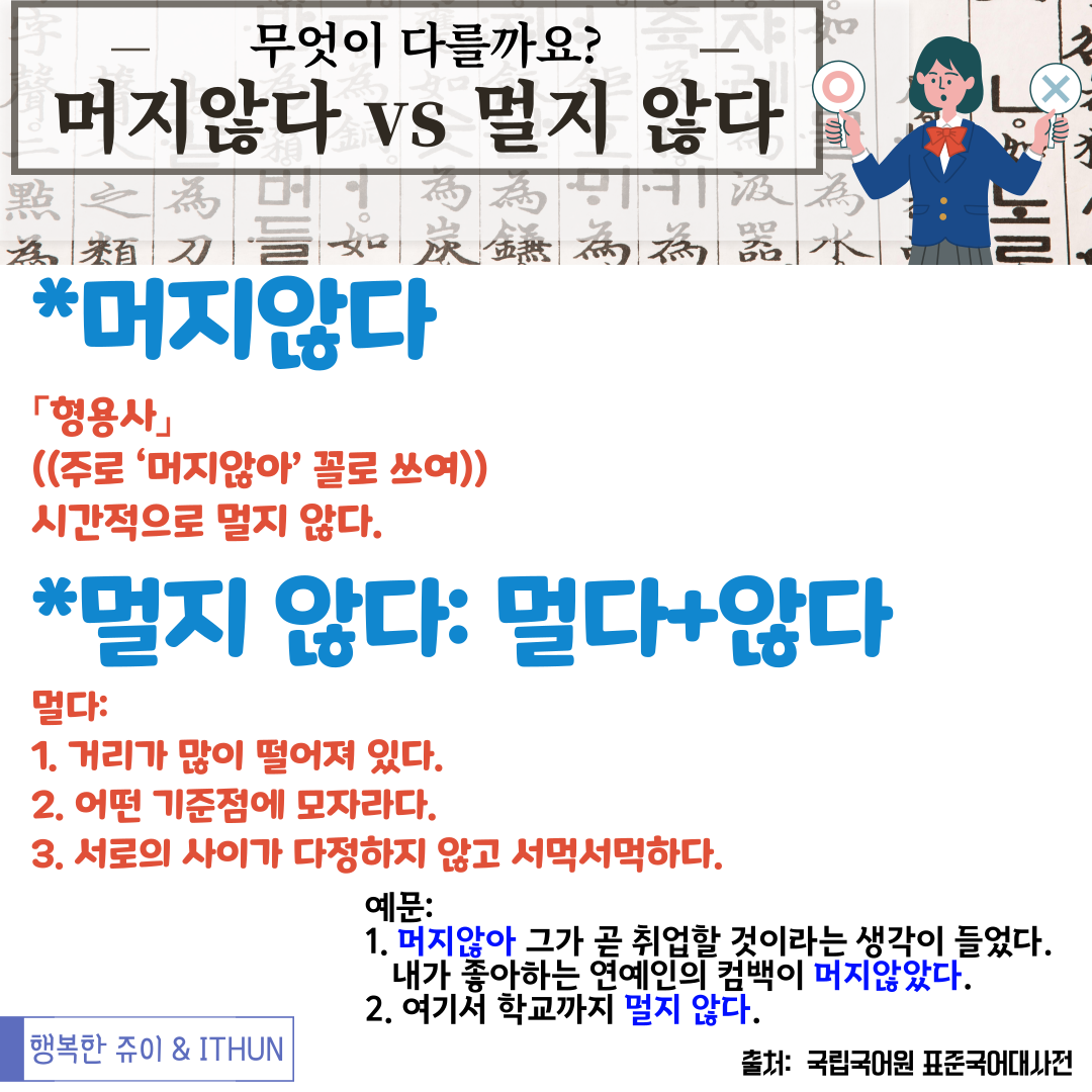 이렇게 정리하고 나니 '머지않다' 와 '멀지 않다' 는 정말 큰 차이가 있었다.