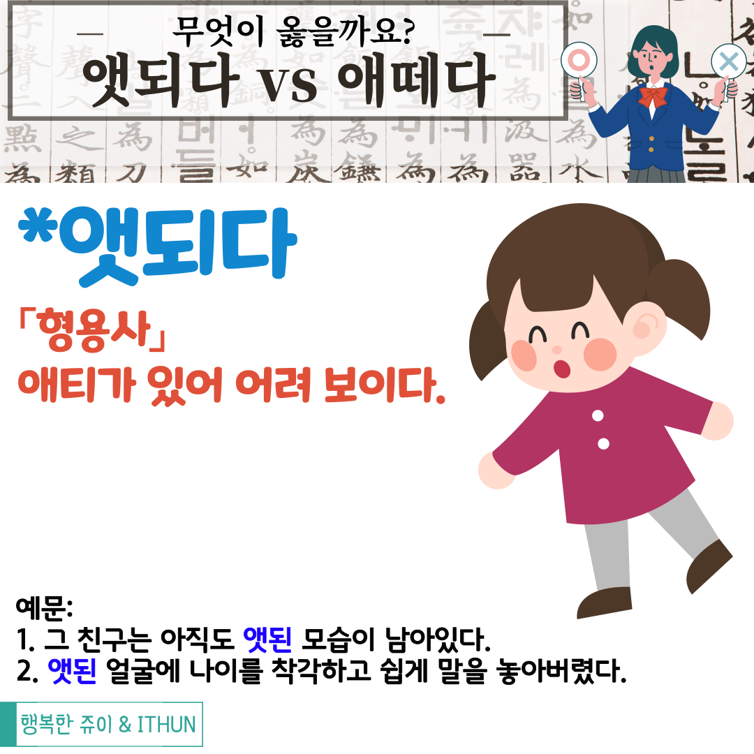 애티가 있어 어려 보이는 것을 '앳되다' 이다.