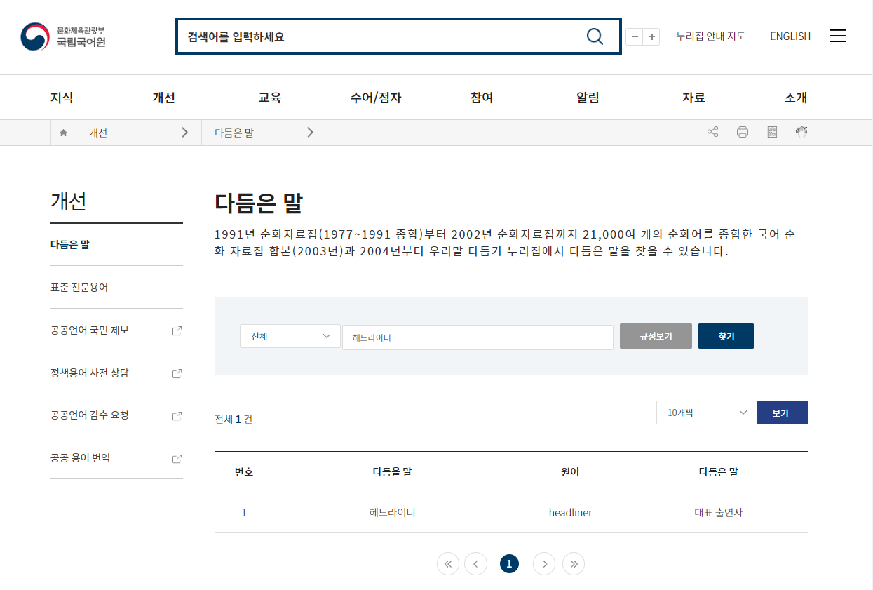 출처: 다듬은 말 | 국립국어원 (korean.go.kr)