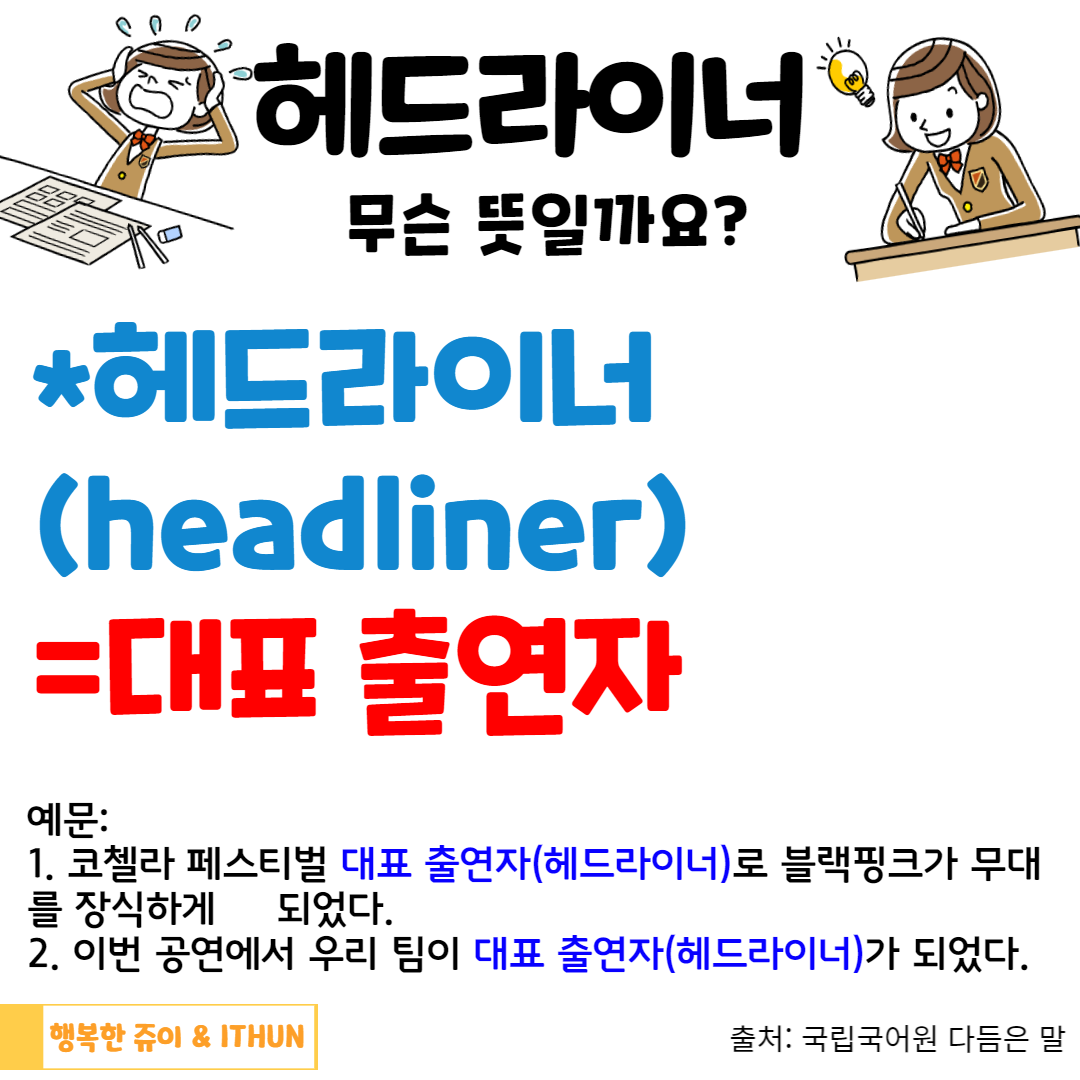 영어 단어 headliner 이 그대로 우리나라에서 사용되는 경우이다.