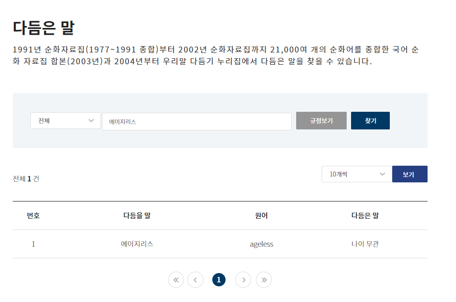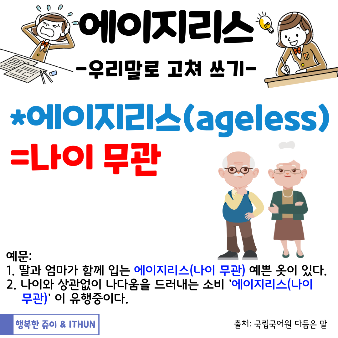 일단 먼저 '에이지리스' 의 다듬은 말을 찾아보았다.