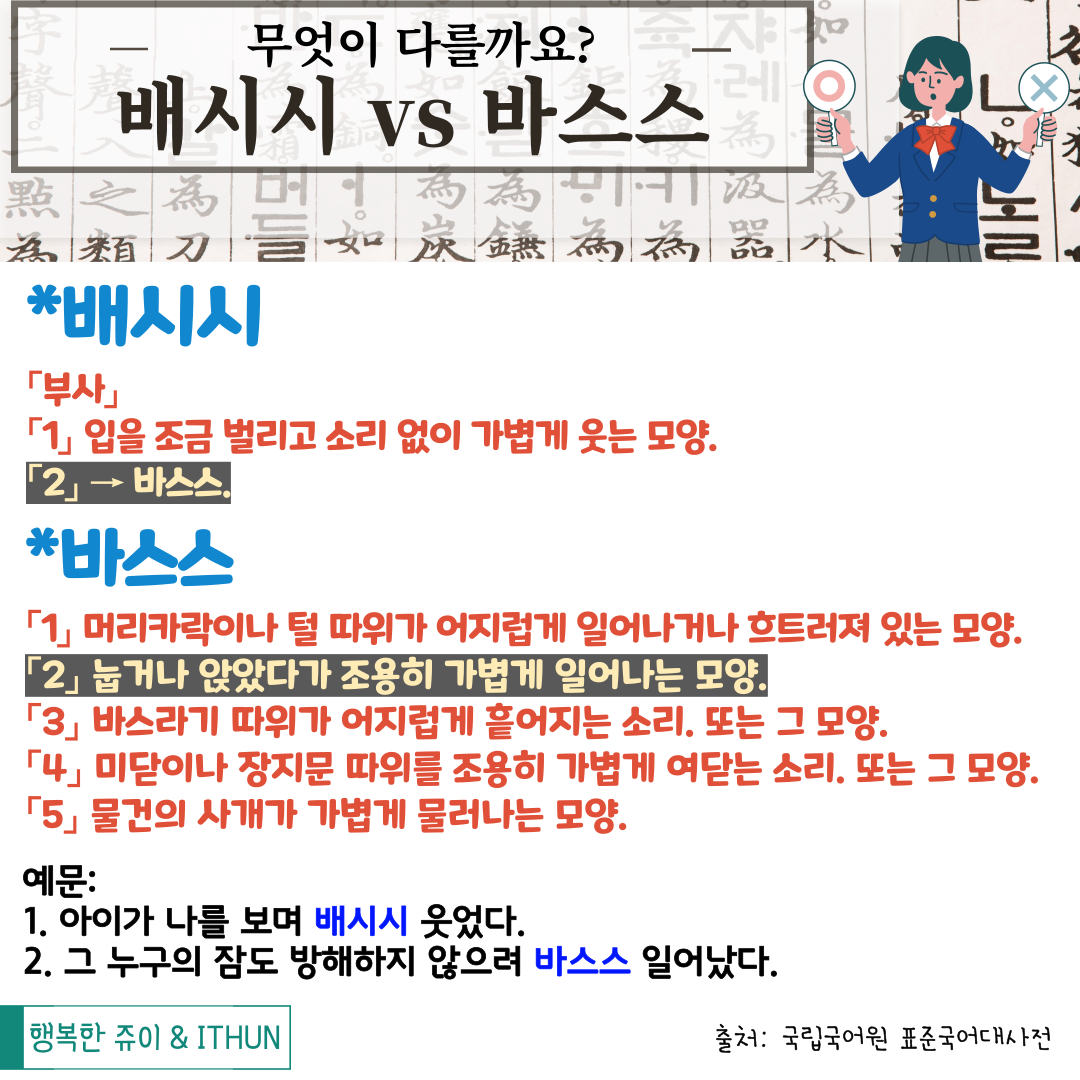 오늘은 '배시시' 와 '바스스' 에 대해 정리해 보았다.