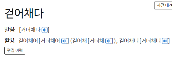 국립국어원 우리말샘에서 '걷어채이다' 를 검색하니