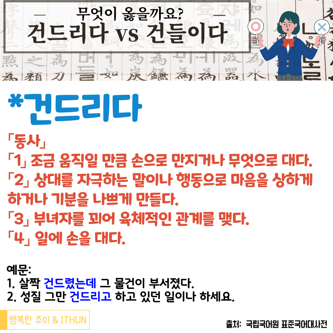오늘은 '건드리다' 에 대해 정리해 보았다.
