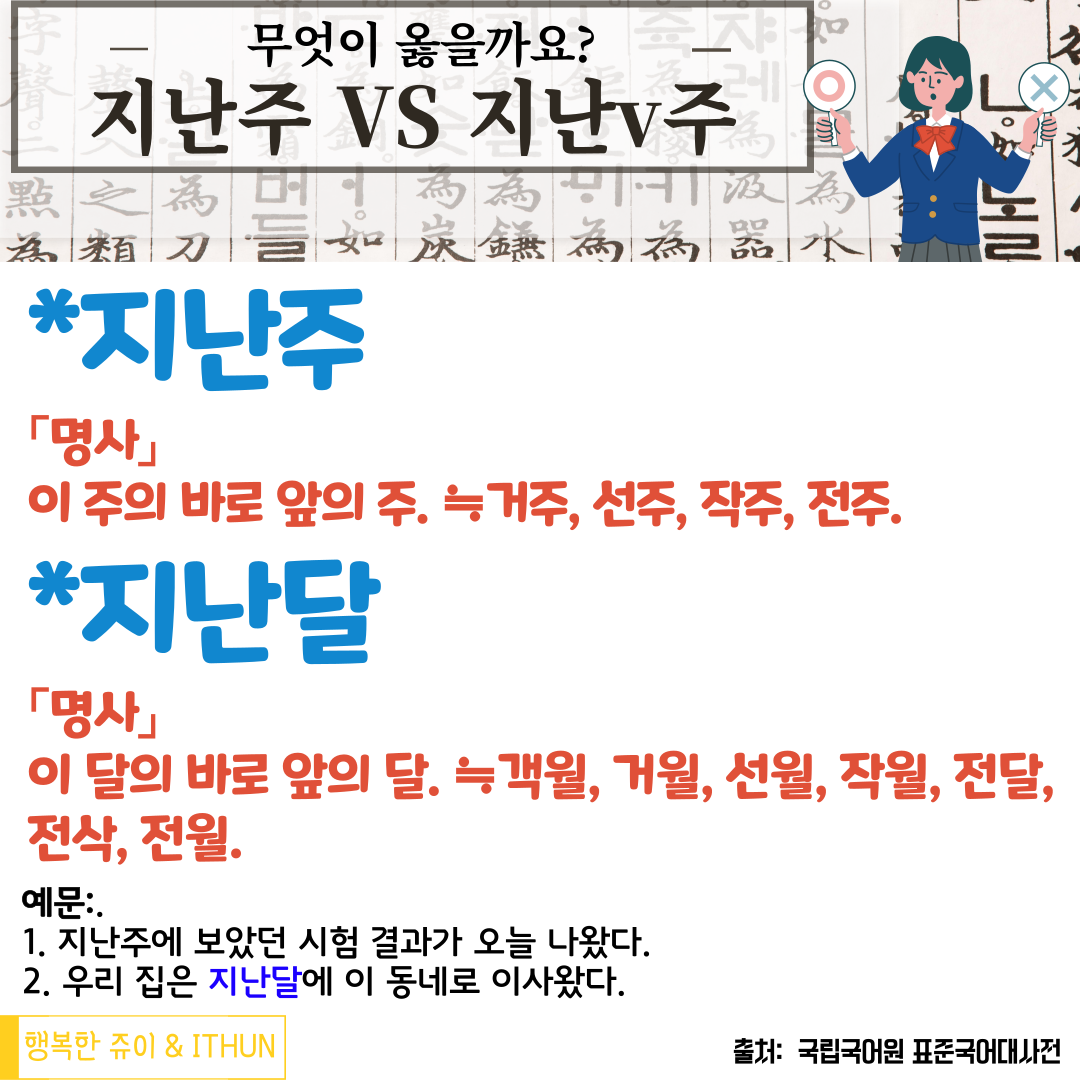 축소 확대 온라인가나다 상세보기 지난주와 이번 주 작성자 방우진 등록일 2023. 3. 13. 조회수 1,759 안녕하세요, 표준국어대사전을 사용하다 궁금한 점이 있어 이렇게 질문 남깁니다. 지난주와 이