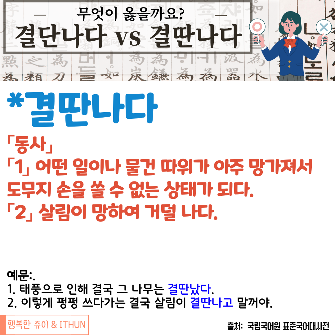 하지만 '결단'과 '결딴'은 전혀 다른 의미이다.