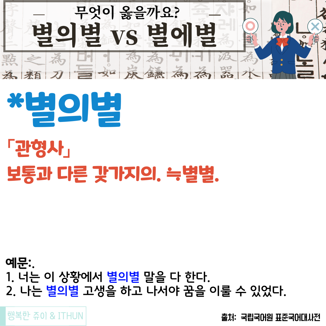 정답은 1번 별의별 생각 좀 그만해. 이다.