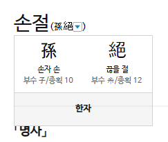 '손절'은 대를 이을 자손이 끊어짐.을 의미하고 있다.