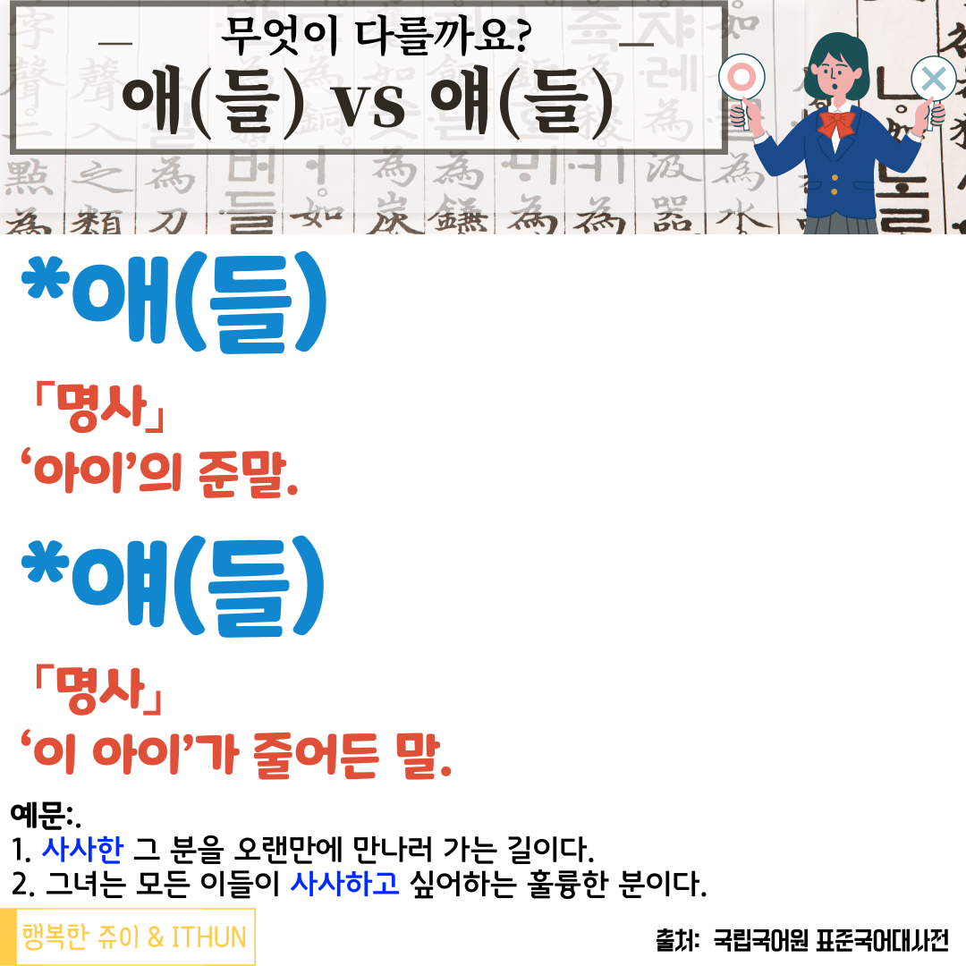 오늘은 '애' 와 '얘' 에 대해 알아보았다.