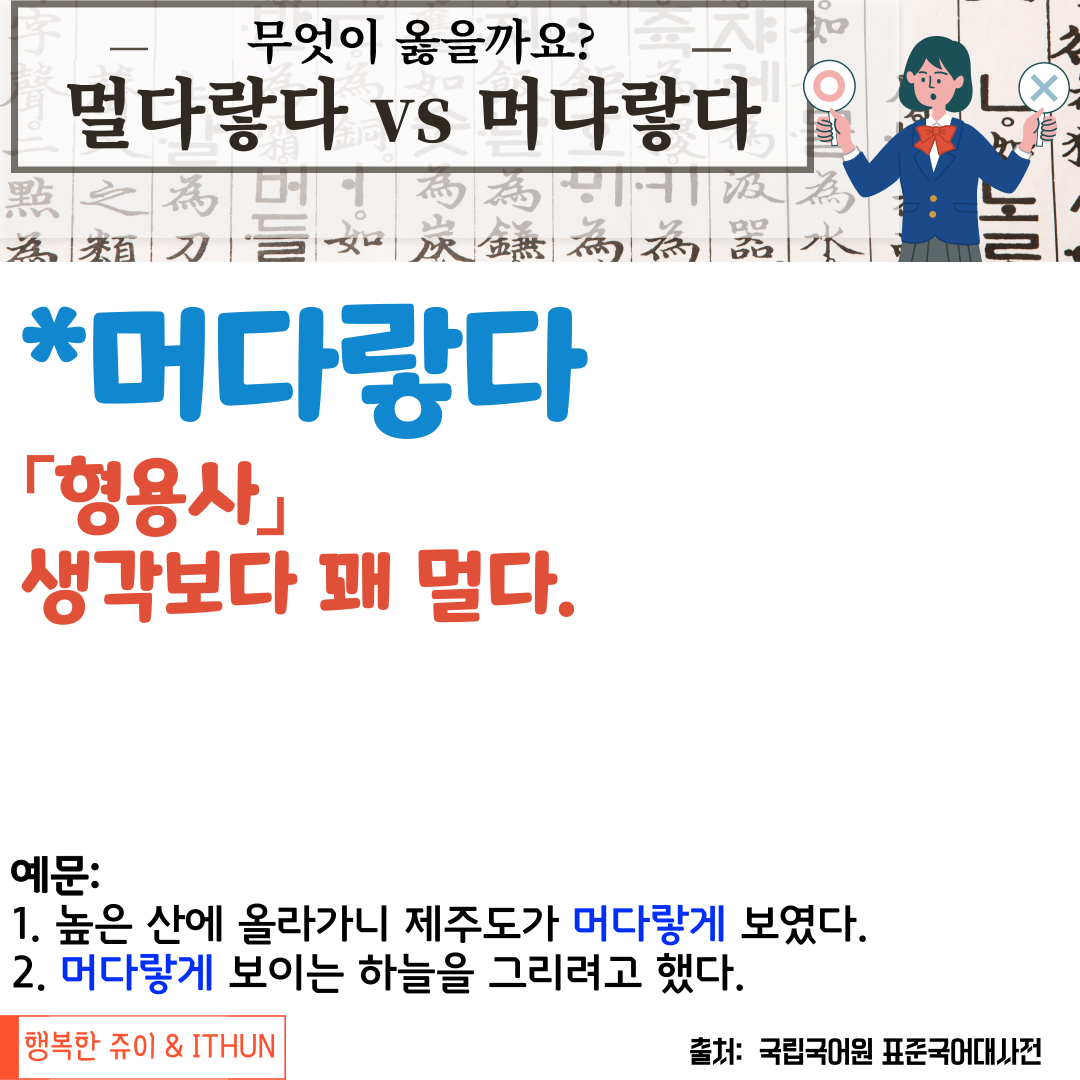 '멀다랗다'로 잘못 아록 사용하는 경우가 많을 것 같다.