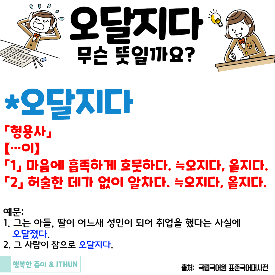 오늘은 '오달지다'에 대해 정리해 보았다.