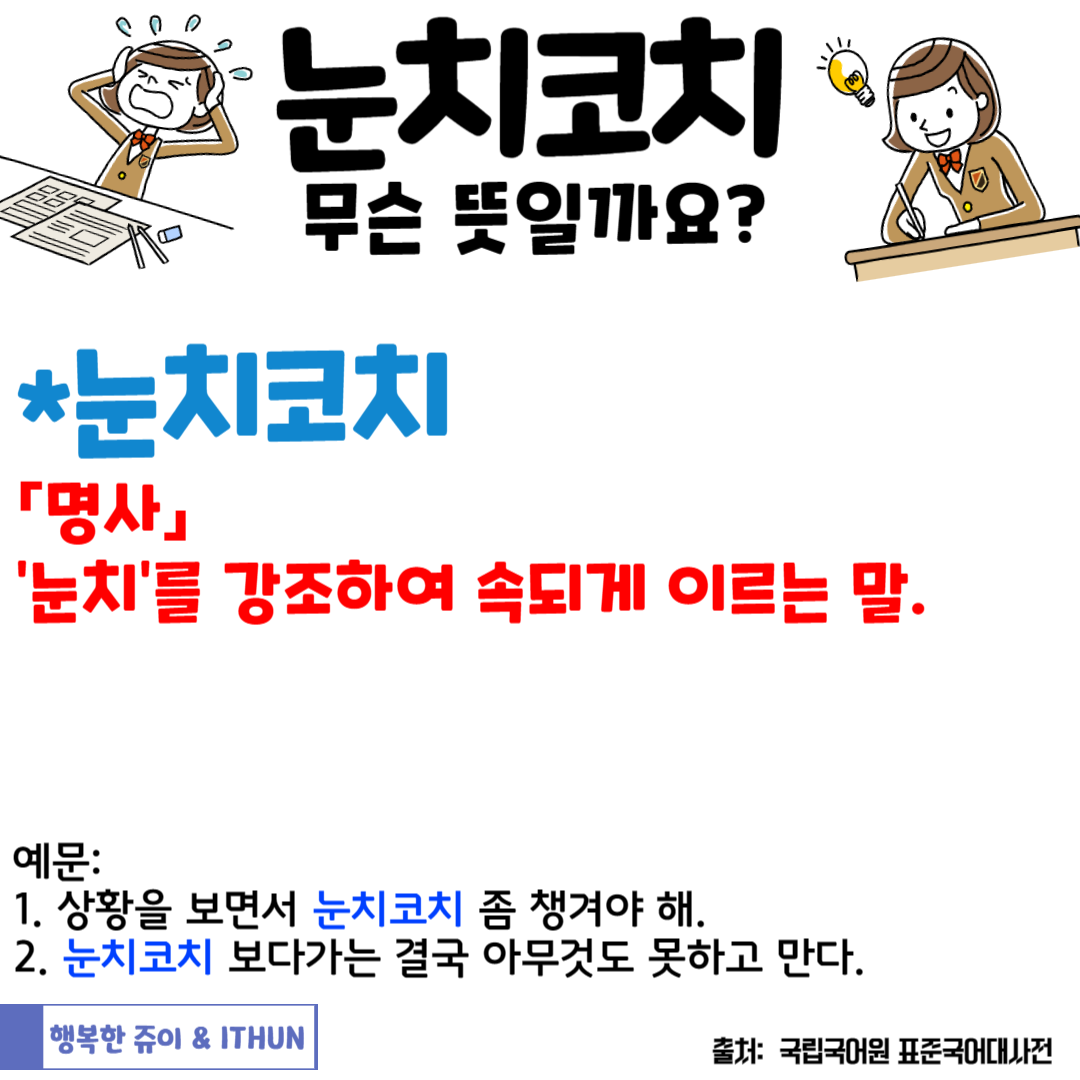 오늘은 '눈치코치'에 대해 정리해 보았다.