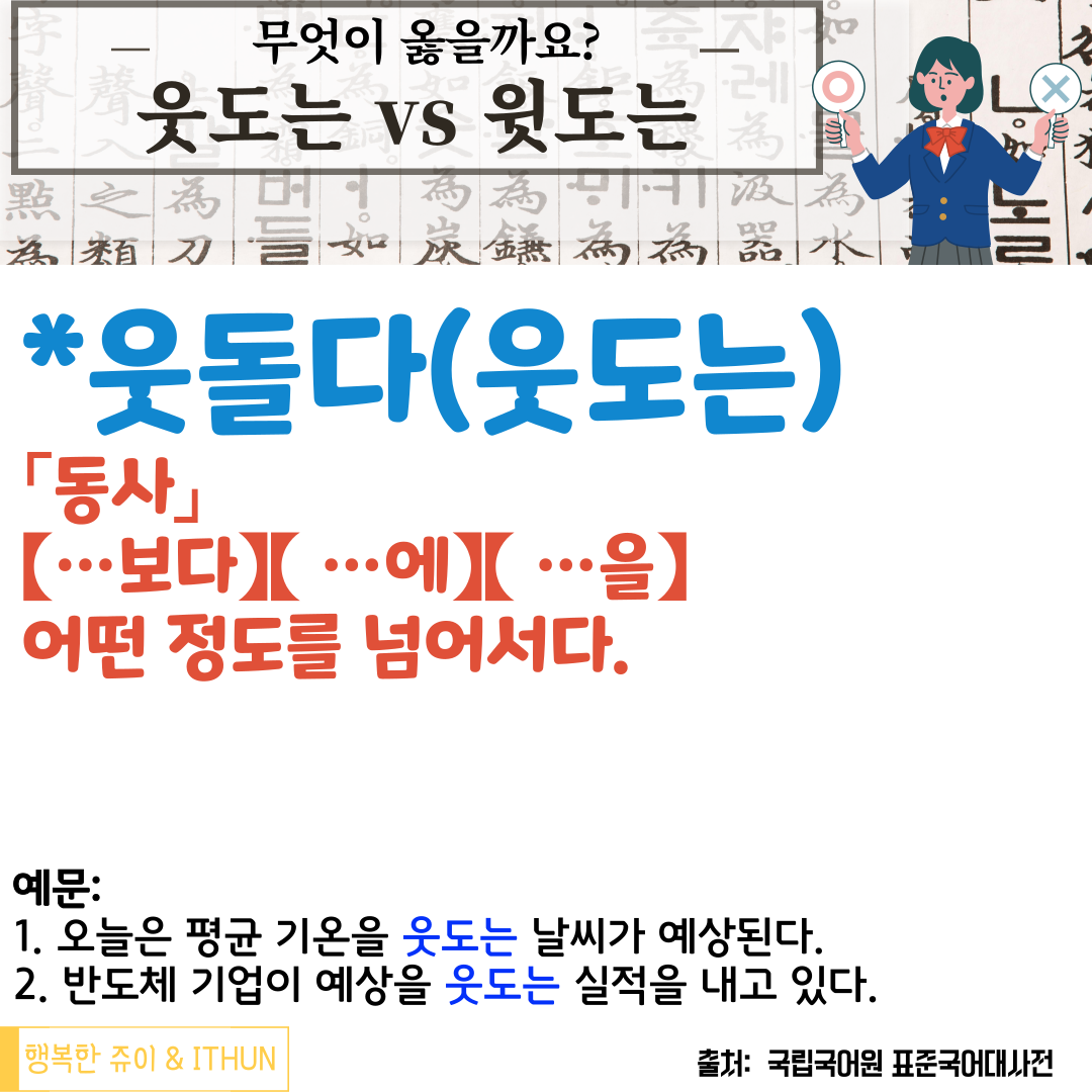 오늘 정리를 통해 왜 '웃도는(웃돌다)'이 맞는 것인지