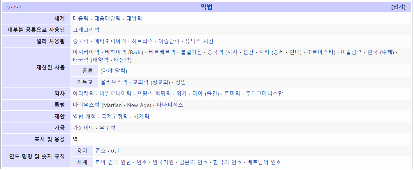 1. 달력의 종류 (출처: 위키백과)