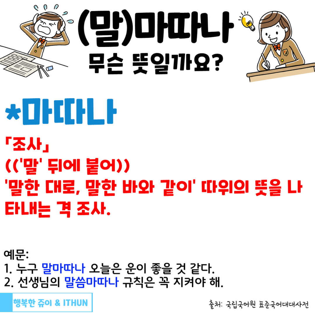 '마따나'를 활용해 문장을 더 만들어 보자!