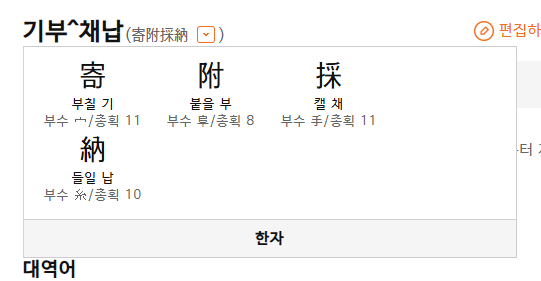 '채납' 단어가 오늘 다룬 '채납'과 같은 단어이다.