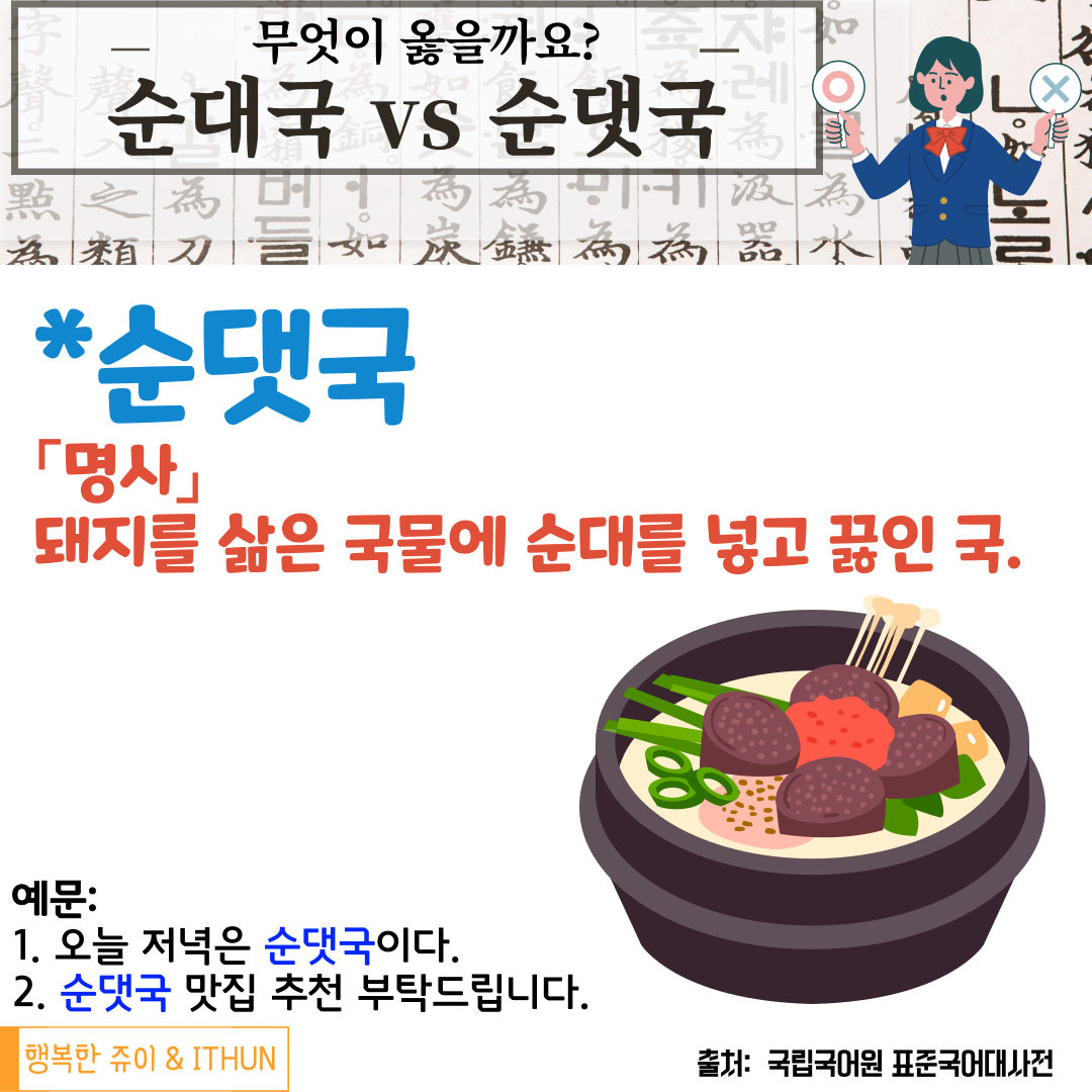 그리고 순대국이 아니라 순댓국이 옳은 표현이라는 사실까지