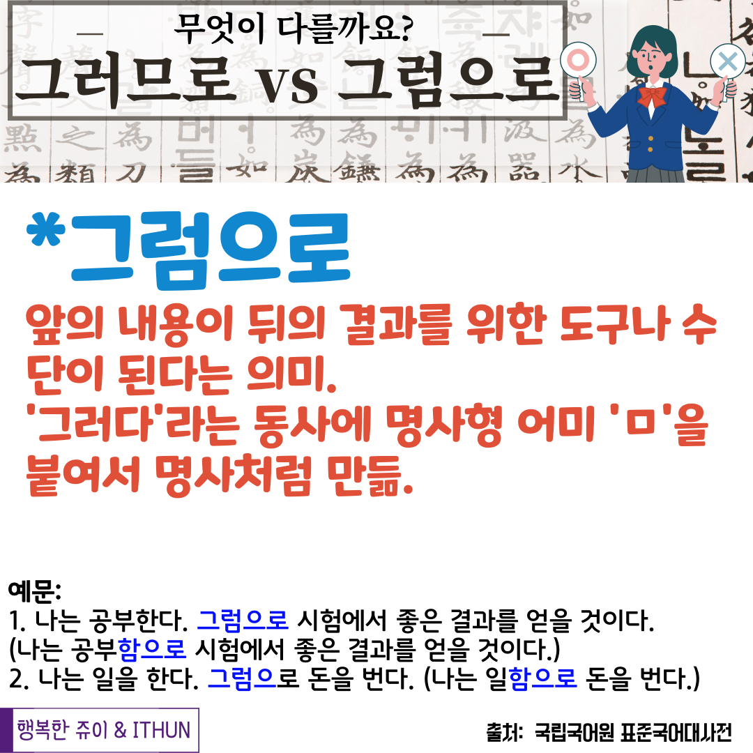 '그러므로'와 '그럼으로'를 잘 구별해서 사용할 수 있기를!