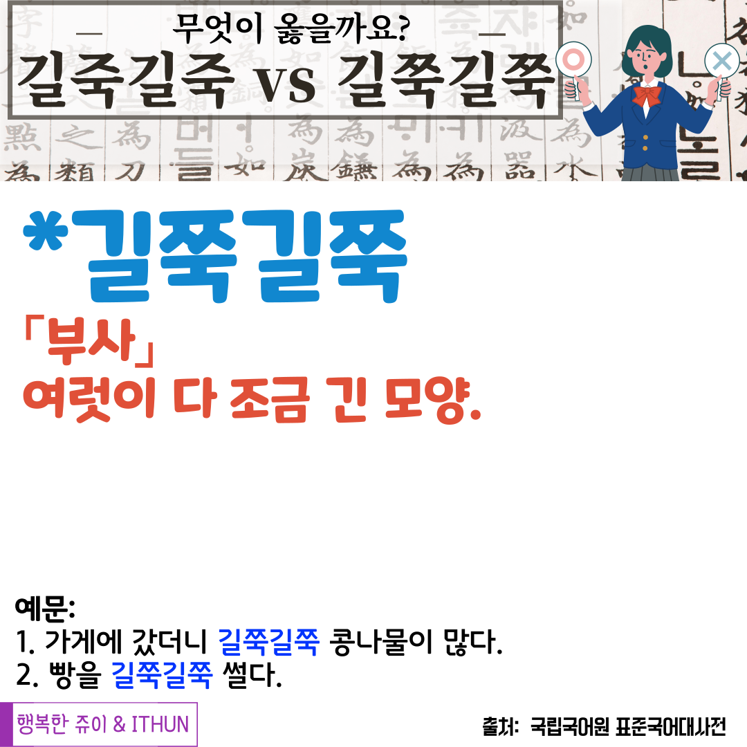 '길죽길죽'과 헷갈려서 잘못 사용하지 않도록