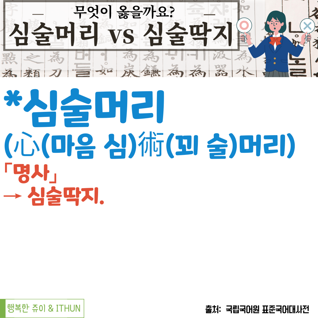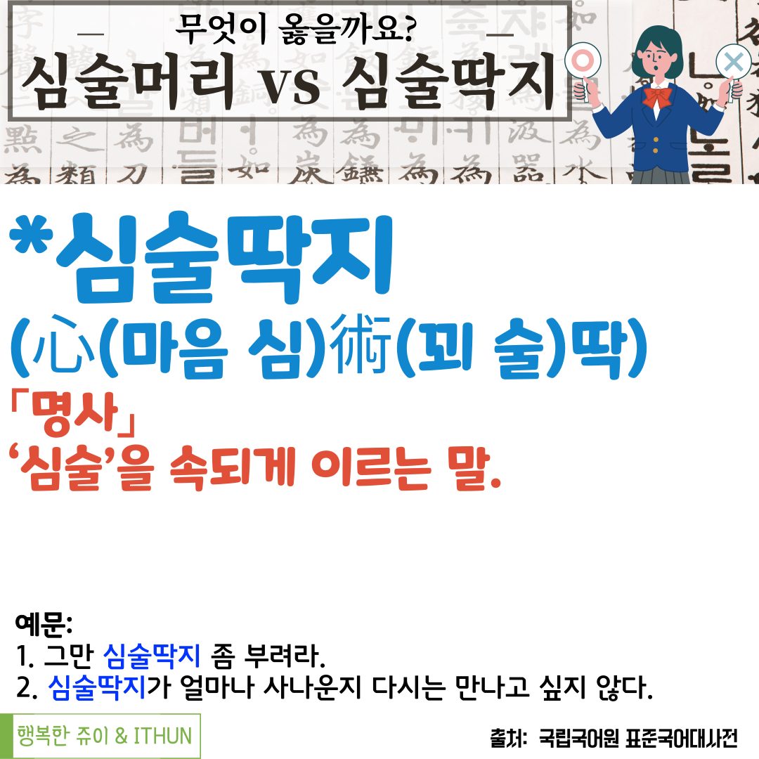 '심술머리'가 아니라 '심술딱지'로 사용해야 함을 이야기하고 있다.