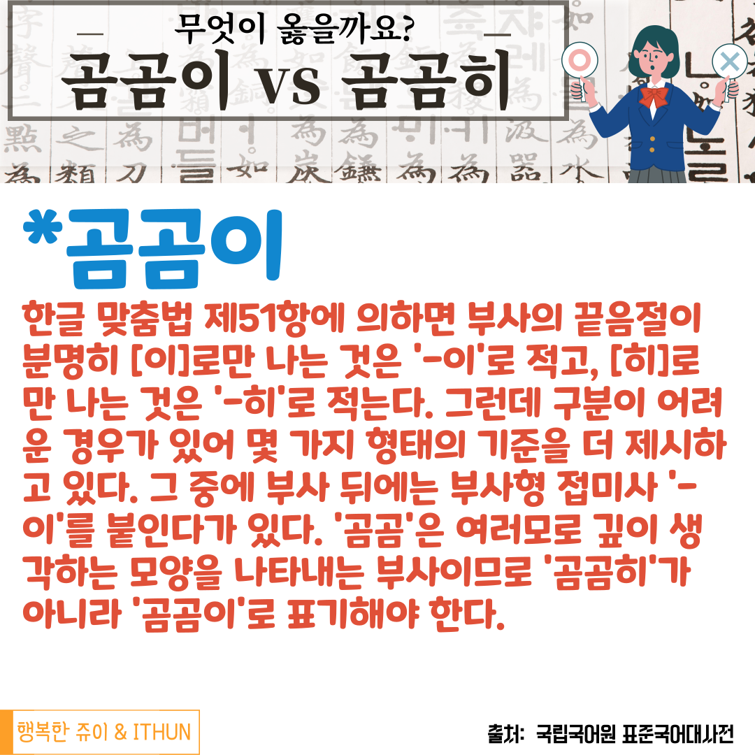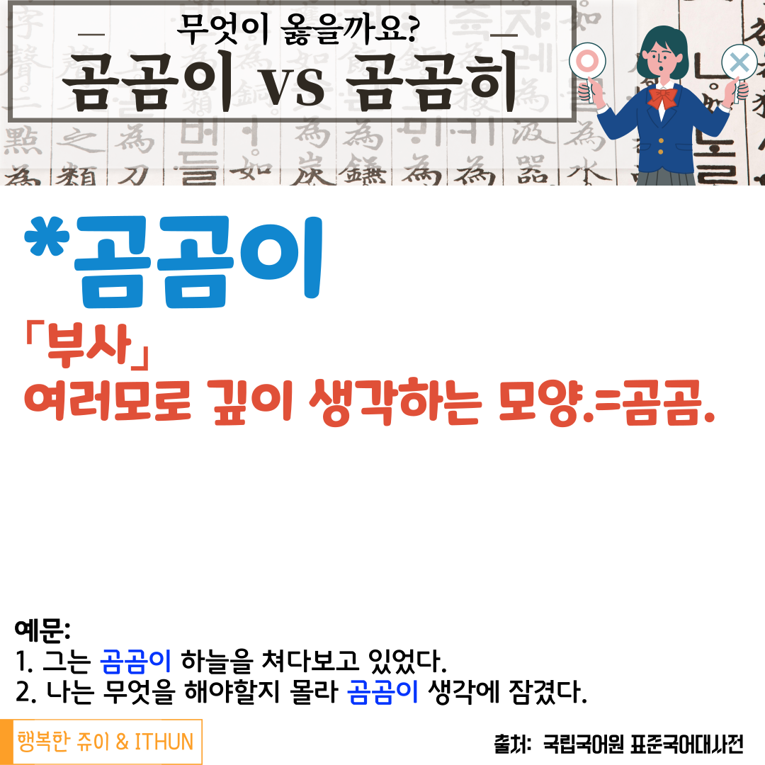 오늘은 '곰곰이'와 '곰곰히'에 대해 정리해 보았다.